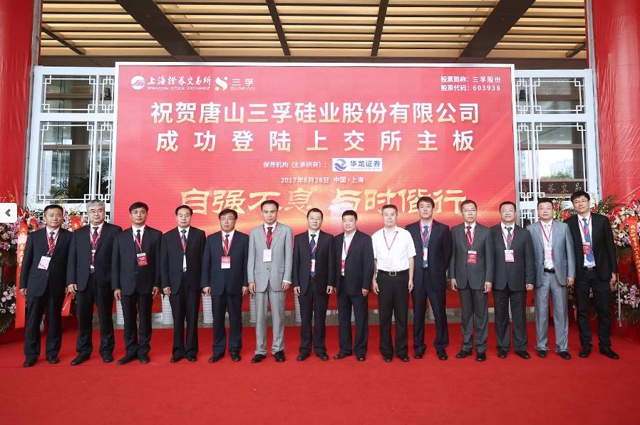 2017年6月28日,唐山三孚硅業(yè)股份有限公司首次公開發(fā)行股票(股票簡(jiǎn)稱:三孚股份,股票代碼:603938)掛牌上市儀式在上海證券交易所隆重舉行!